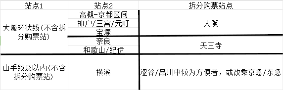 以京都-天王寺为例,京都-天王寺为960日元,从大阪站拆成两段购票为820日元。