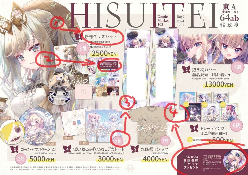 ④Fanbox支援者様:部分摊位出示fanbox订阅会员卡可以免费领取周边,详情见各摊位摊主在社交平台/fanbox的公告。